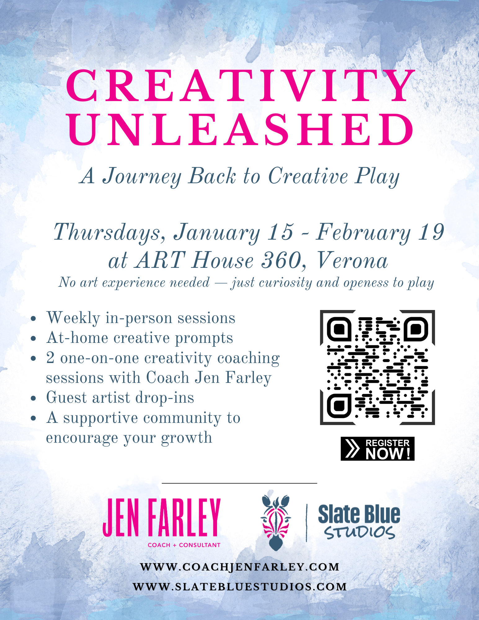 Each week, you’ll gather with a supportive group at ART House 360 for hands-on creative exploration, gentle coaching, and community connection. Between sessions, you’ll receive creative invitations to keep the inspiration flowing at home. No artistic experience required — just curiosity and a willingness to explore. You’ll walk away with more than art projects — you’ll leave with new friends, renewed self-trust, and a creative practice that reminds you what it feels like to be fully alive.